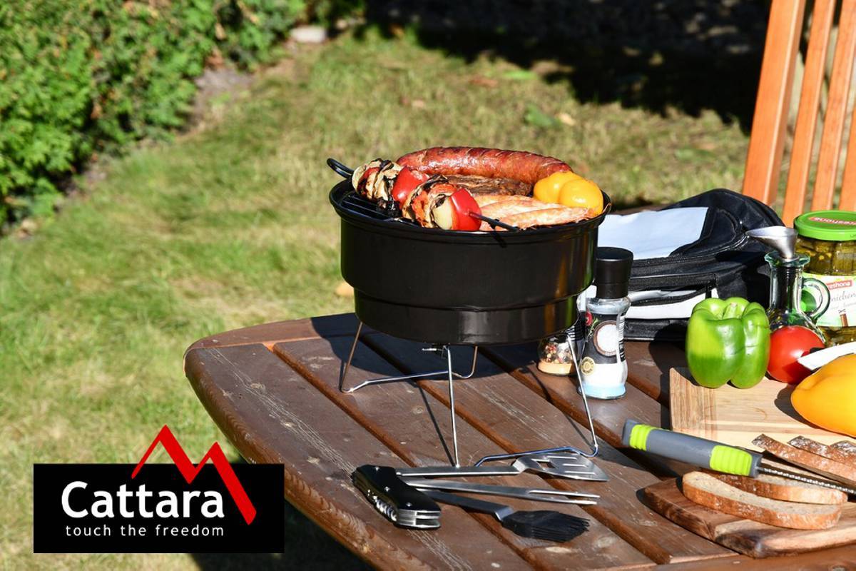 Kompakt, hordozható grill BOSA táskával, utazáshoz, kempingezéshez és egyéb szabadtéri használatra alkalmas.